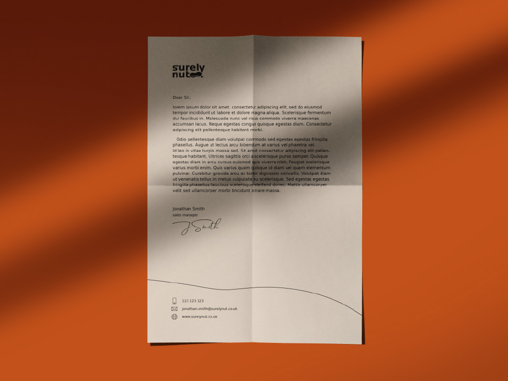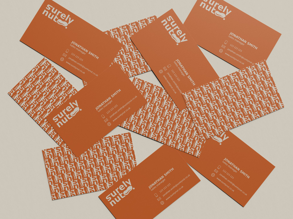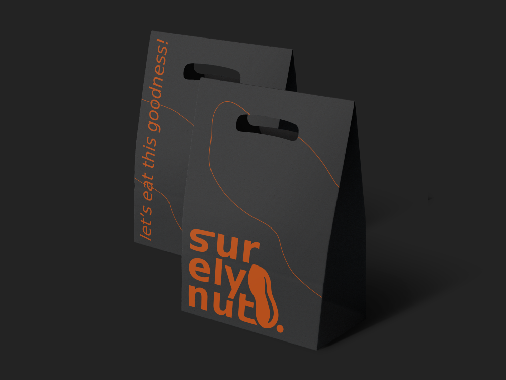 “Surely Nut” on õhinapõhiselt loodud maapähklivõi bränd. Visuaalse identiteedi aluseks valisin soojad, murtud toonid, mis loovad sõbraliku ja koduse tunde ning seostuvad rikkaliku maapähklivõimaitsega. Toonivalik võimaldab – nii, nagu pähklivõi maitseidki – logo- ja taustavärve erinevalt kombineerida.